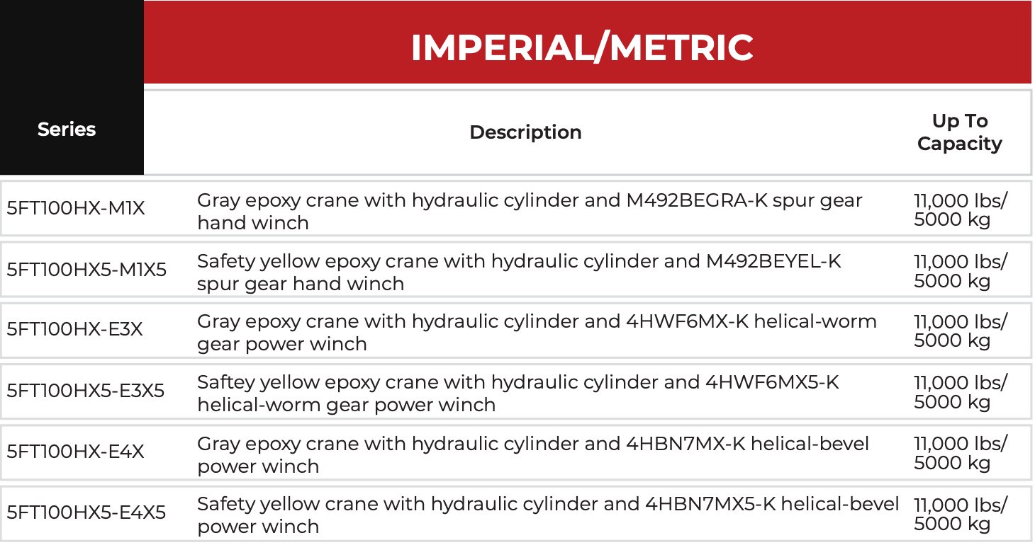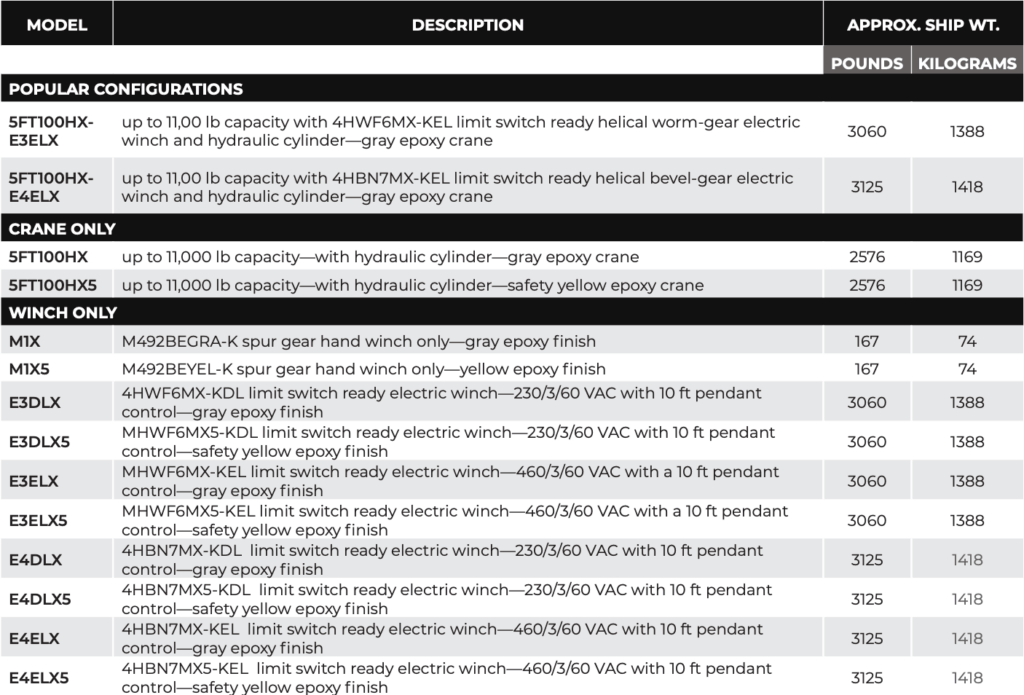 Captain 10,000 5FT100 Crane Product Sheet (PS5FT100-1225)