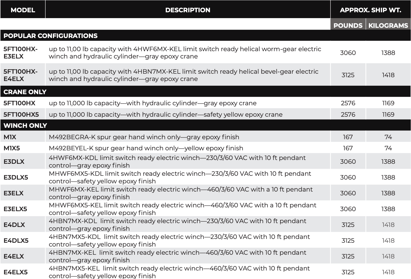 - Available winches include manually operated and electric models in various voltages to meet a variety of needs.